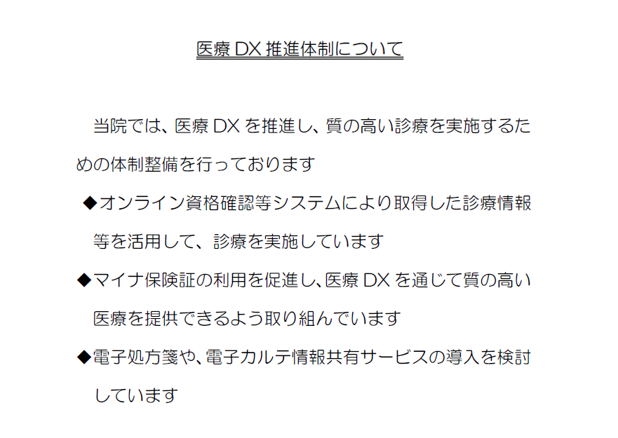 マイナンバーカードを健康保険証として利用できます。また、同意しておいただければ、特定健診情報、薬剤情報なども診療に利用させていただきます。
